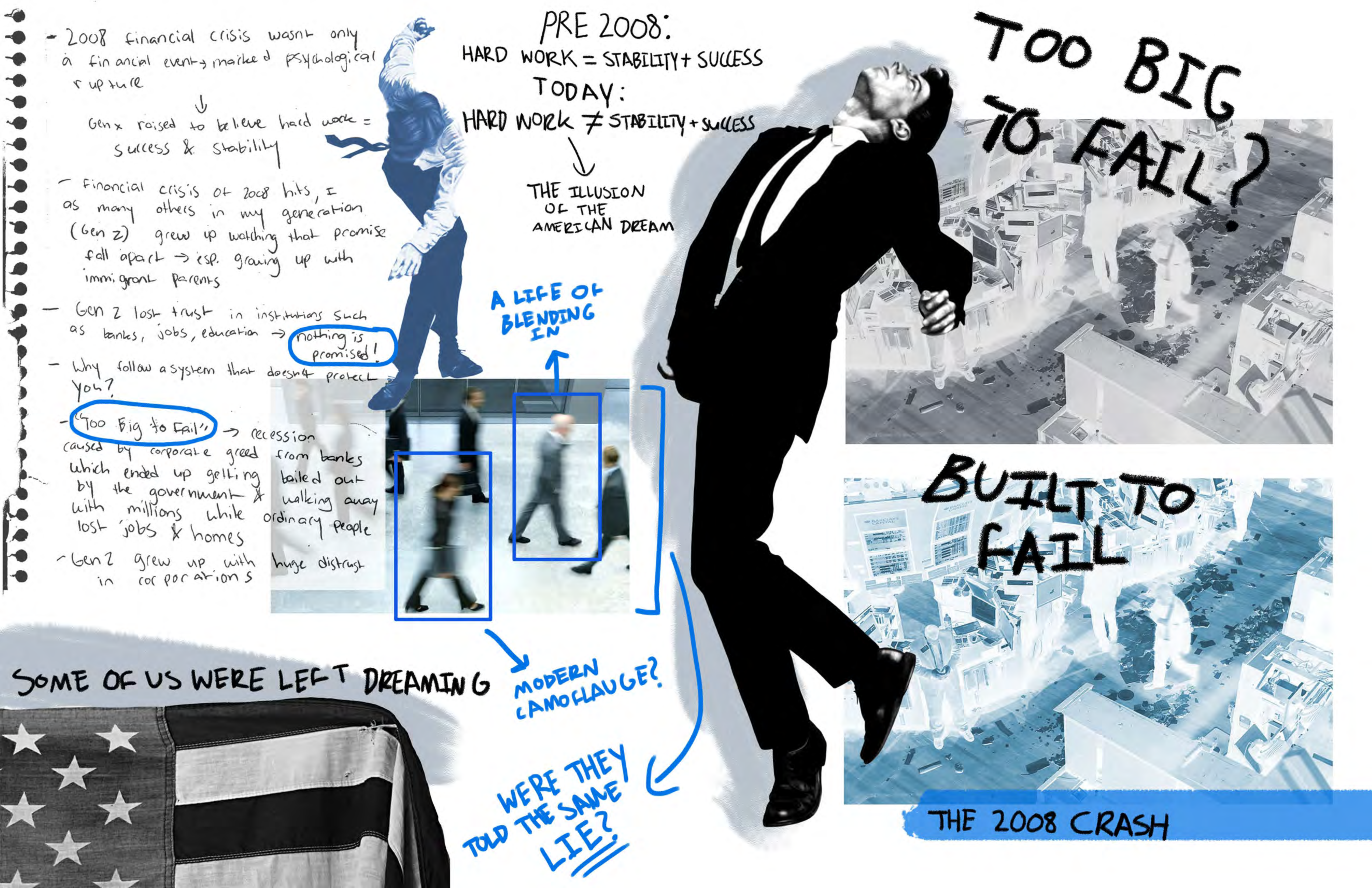 “Attention Recession” is a cultural response to the collapse of stability after the 2008 financial crisis. As Gen Z inherited a world of economic precarity and constant digital stimulation, our ability to focus, dream long-term, or commit deeply began to erode. Drenched in overstimulation, we cope through distraction—scrolling, multitasking, consuming—but rarely slowing down. This collection explores the emotional debris of a generation wired to survive chaos, not clarity.